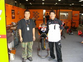 岡田さんのご好意で、ピットの中で記念撮影をして頂きました。 しかも #69 ニッキー・ヘイデンの本番用マシンの前で!! 本当にありがとうございました。